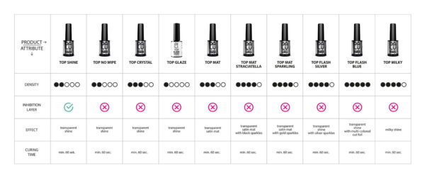 Palu Top Crystal, renklere derinlik kattığı için özellikle koyu renkli kalıcı ojeler için tavsiye edilir. Ürün tırnak tasarımına yoğun bir parlaklık sağlarken, yıkanması gereken bir inhibitör tabakası gerektirmediği için birikme süresini azaltmaya yardımcı olur. Formül dayanıklılığı, çizilmeye ve sararmaya karşı direnci ve çekici bir “ıslak tırnak” efektini garanti eder.